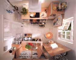 - Думайте о том, чем занять угол. Чаще всего в угол ставят угловые шкафы или полки без дверок, это очень удобно. Некоторые делают в углу раковину, располагая ее по диагонали (стоя перед ней вы должны смотреть в угол, а не в стену). Удачным решением будет разместить на угловой стойке всякие мелкие бытовые приборы вроде миксера, соковыжималки, микроволновки, кофемашины. А некоторые хозяйки бытовой технике предпочитают растения в горшках или статуэтки – абсолютно бесполезно, но красиво.