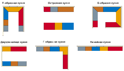 То, как будет выглядеть оптимальная конфигурация вашей кухни, зависит от площади и формы помещения. Каковы же есть варианты планировки кухни?