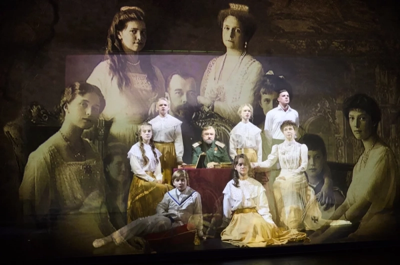 Драматические страницы русской истории оживают на сцене. Произошедшие много десятилетий назад, они по-особому трогают современного зрителя. Перед глазами проходит хронометраж трагических событий ХХ века — последние дни венценосной семьи Романовых. Вот на полупрозрачном экране документальные снимки поезда, в котором царь со свитой так и не доехал в Москву. И мы замечаем в окнах вагона Николая II, а в глубине сцены идет действие того драматического «спектакля», который происходил в жизни России: отречение государя, разрушение самодержавной власти, пленение и казнь царской семьи.