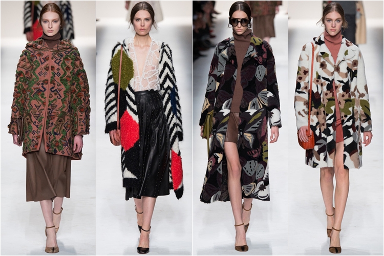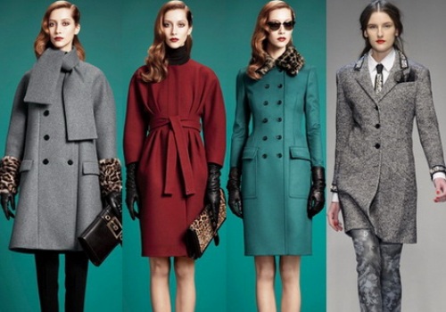 - Расцветки. Из моды никогда не выйдут пальто сдержанных классических цветов: чёрное, серое, коричневое, бежевое. Однако в этом году дизайнеры предлагают настоящие взрывы расцветок в верхней одежде: жёлтый, ярко-красный, зелёный. Стоит отметить, что такие ведущие дизайнеры как Valentino не поскупились на украшение пальто замысловатыми принтами, безумным сочетанием цветов, линий, фигур, стразами и другими материалами. Креативные леди будут в восторге.