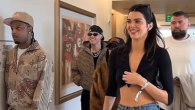 Кендалл Дженнер была замечена на «Супербоуле» — финальном матче североамериканской Национальной футбольной лиги. Мероприятие состоялось 8 февраля на стадионе «Ливайс Стэдиум» в Санта-Кларе, штат Калифорния. Модель выбрала для выхода на публику черный топ с глубоким декольте и короткими рукавами, голубые джинсы и солнцезащитные очки. Манекенщица распустила волосы и сделала макияж в естественном стиле.